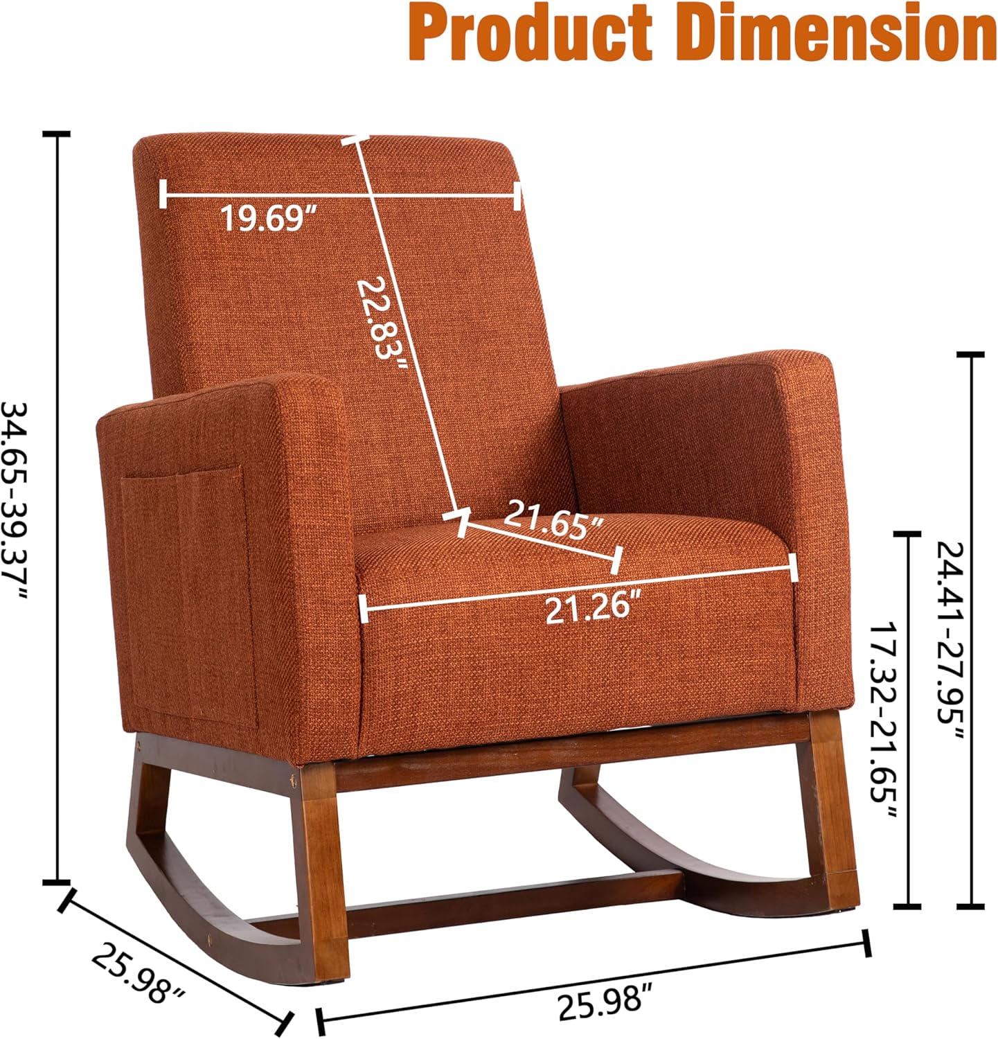 - 30-Degree Swing &Gentle Rocking:Our living room chair is designed by curved design providing you with a gentle rocking, which helps you to relax. The upholstered glider rocker chair with gentle rocking can also help you soothe your baby to sleep