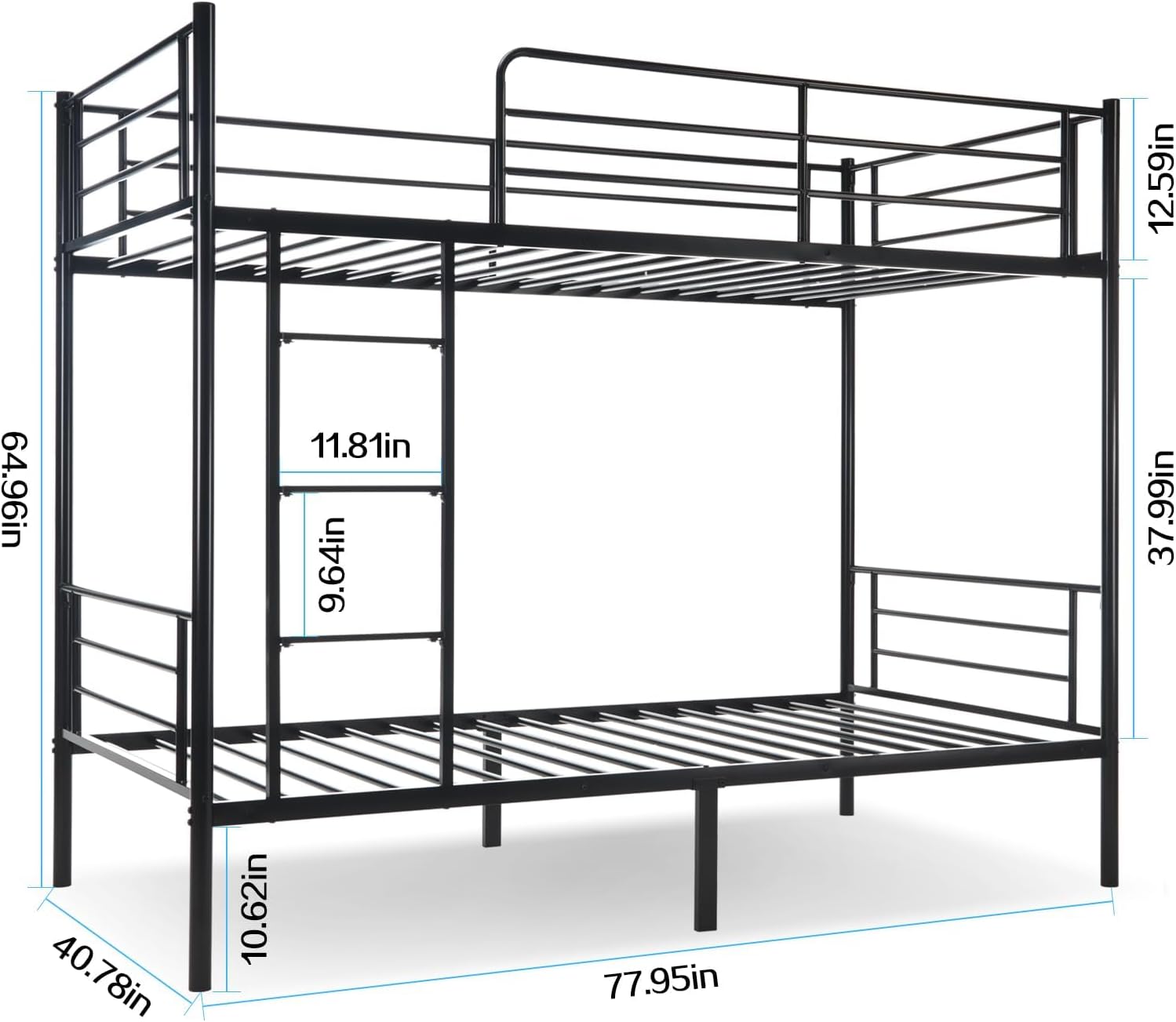 Bunk Bed Twin Over Twin,Twin Bunk Beds Metal with Ladders and Guardrail for Kids Teens Adults,Heavy Duty Metal Slats,No Spring Box Required,Black