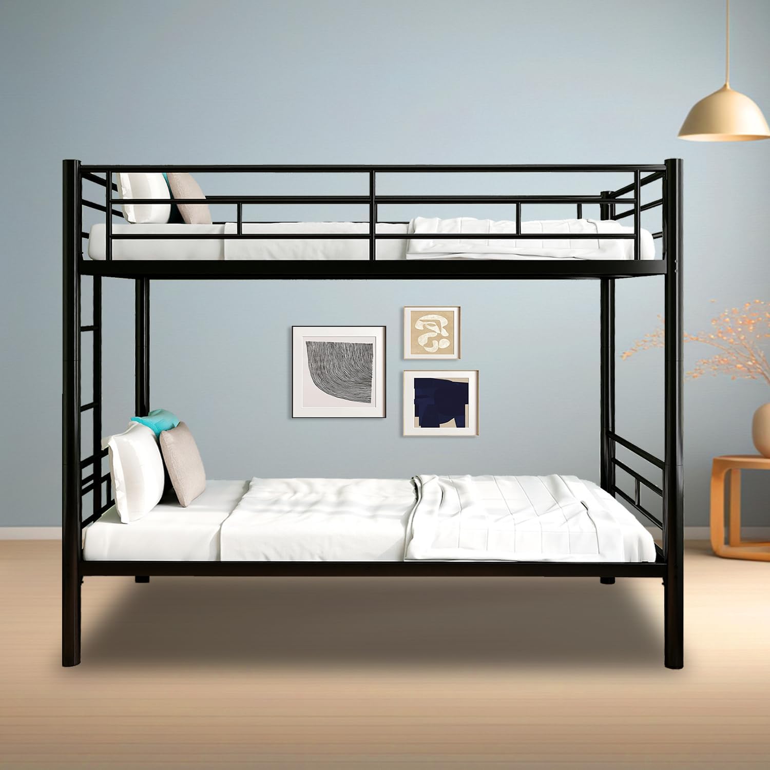 - Safety and Security: There are 2 built-in side ladders to ensure easier access to the top bunk, while full-length safety rails around the top bunk protect people from falling off
