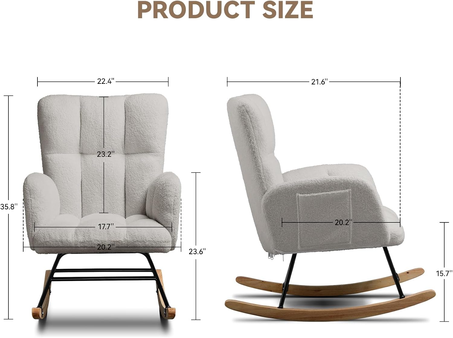 • SIDE POCKETS & ANTI-SLIP PADS – What makes the glider rocking chair special is its two side pockets you can place your necessities like books and devices into it and placing it within near reach. The anti-slip pads makes rocking more stable and smoother