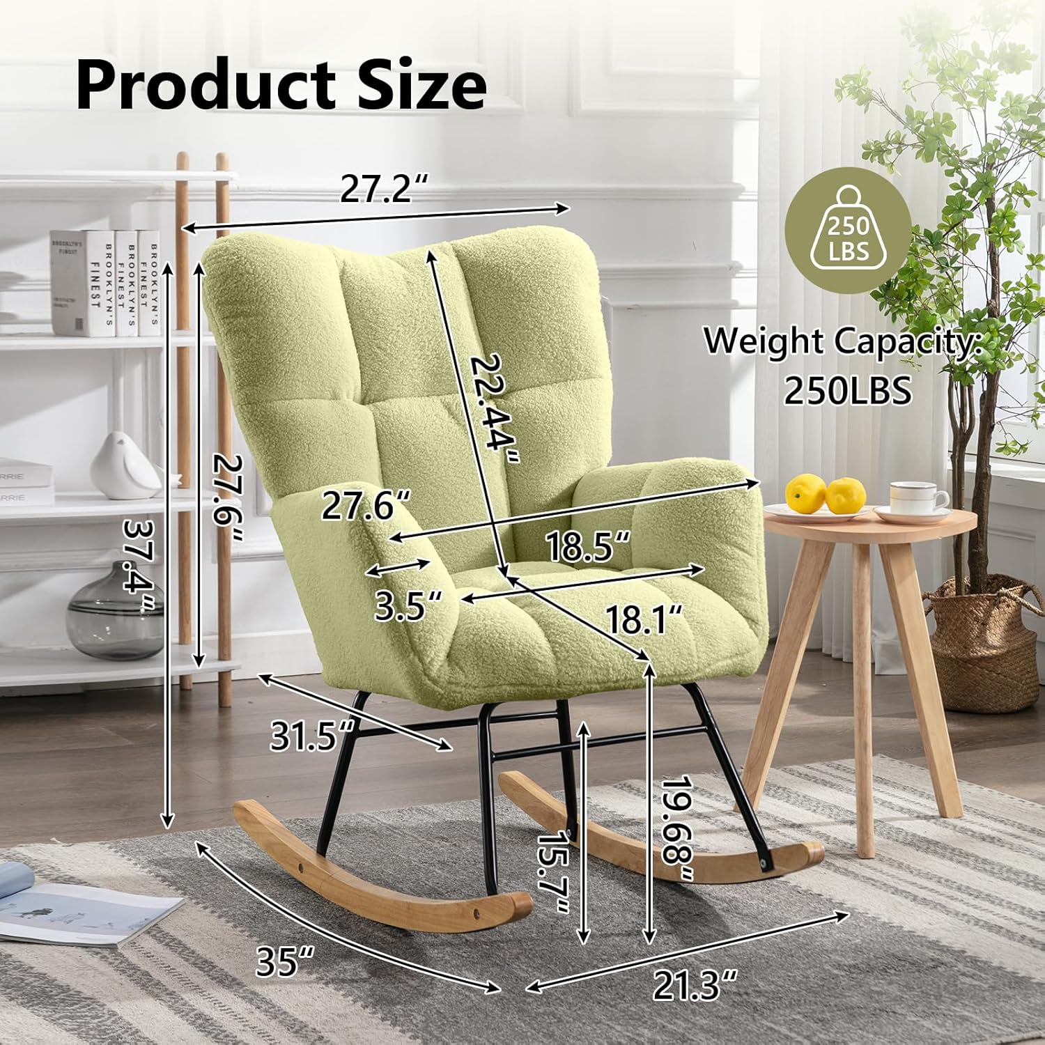 • EASY ASSMBLE – This rocking arm chair is very easy to assemble, includes all the parts and instructions, and comes with the necessary tools. It can be assembled within 20 minutes. Overall Dimension: 32″(L) x 28″(W) x 37″(H).
