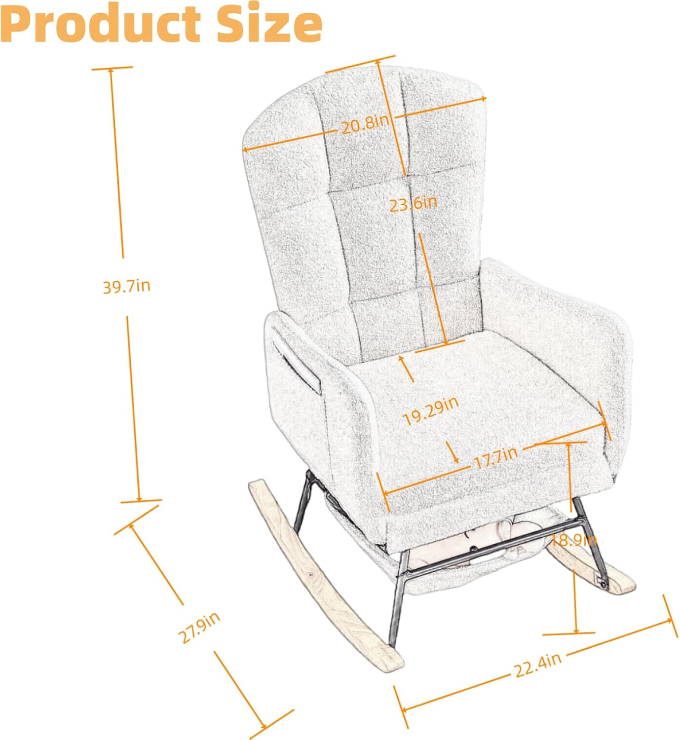 • Super Comfort: The glider rocker chair covered with touch upholstered and filled with a high-density soft sponge, it combines the advantages of durability, breathability, softness, and beauty.