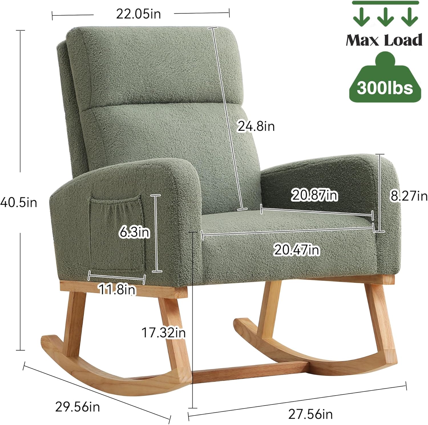Rocking Chair Nursery, Sherpa Nursing Rocking Chairs, Upholstered Nursery Glider Rocker for Mom Nursery Morden Accent Rocking Chair with Side Pocket for Living Room,Bedroom,Teddy Green