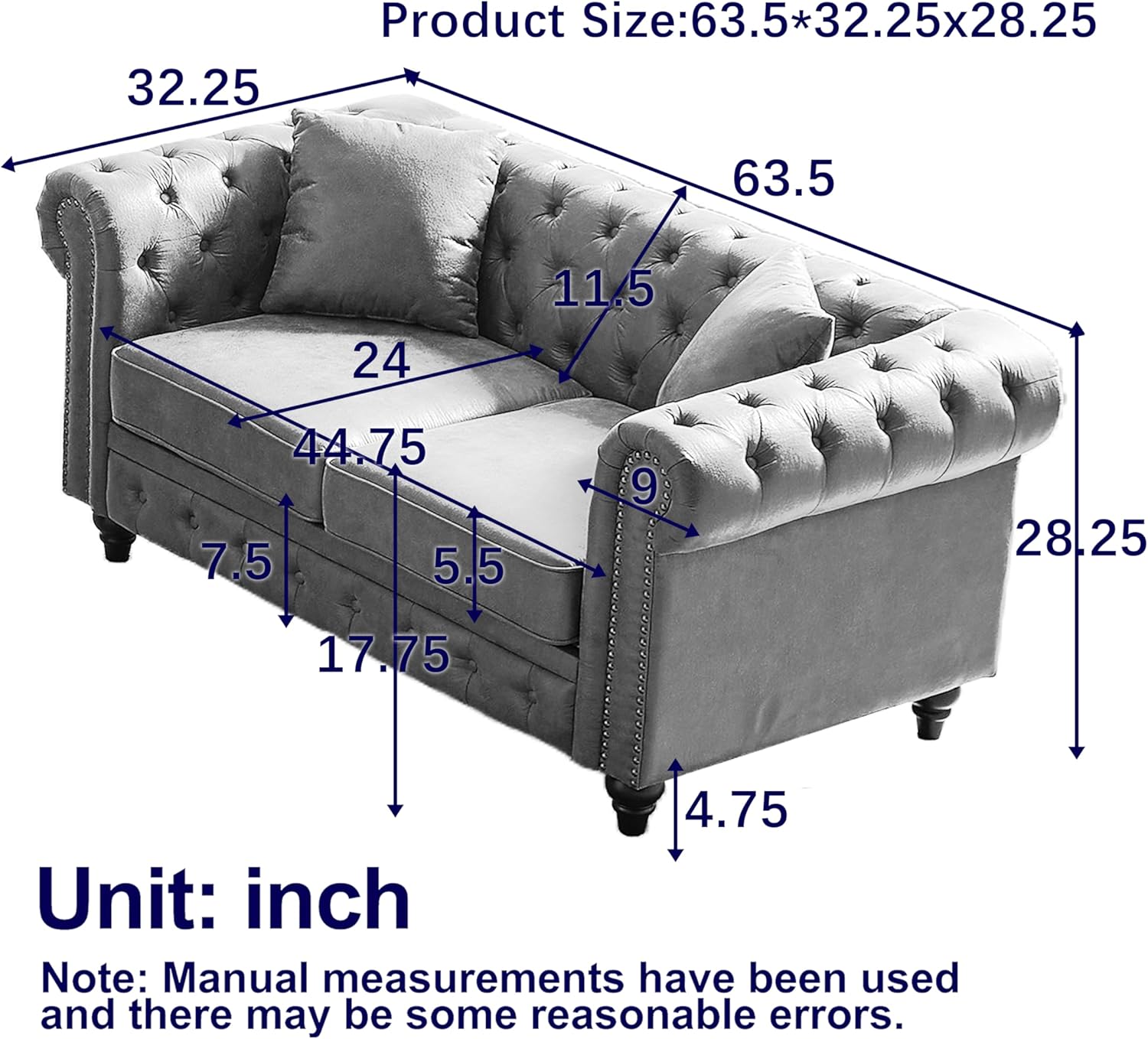 | Product Dimensions | 63.5"D x 32.25"W x 28.25"H |
