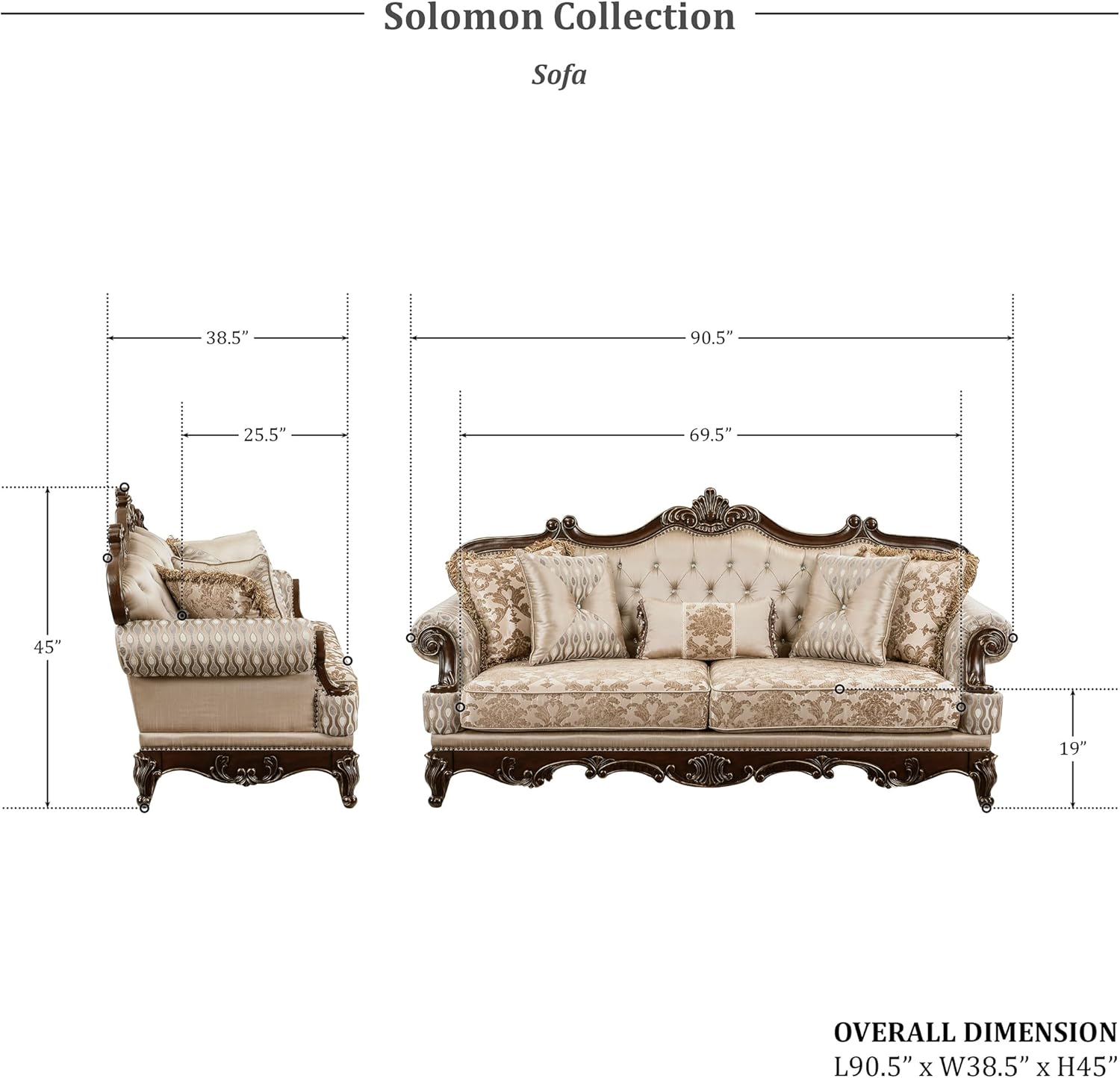 • [Perfect Size] The 3 seater sofa measures: 90.5”W x 38.5”D x 45”H; seat measures 69.5”W x 25.5”D x 19”H; Arm height: 28“. This couch can support up to 900 lbs
